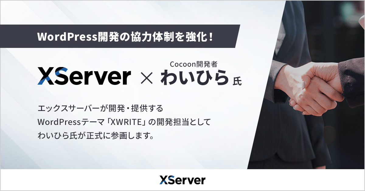 - Cocoon開発者のわいひらさんが、エックスサーバーが開発・提供するWordPressテーマ「XWRITE」の開発担当として正式参画