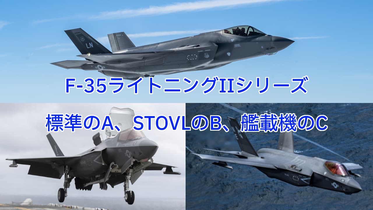 最新のステルス機F-35ライトニングIIシリーズは、空軍仕様の標準型F-35A、海兵隊で使われるSTOVL(短距離離陸/垂直着陸)のステルス機F-35B、空母運用が可能なF-35Cの3機種があります。