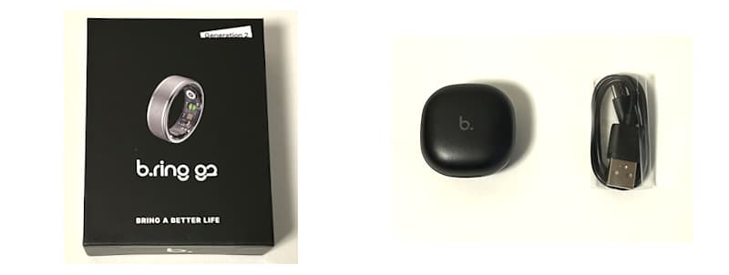 下図は、ブリング製スマートリングG2のパッケージと製品一式の写真です。
