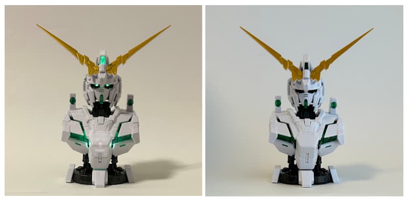 そこで、ワイヤレスLEDを組み込んだ青い目のユニコーンガンダムと、ルミナスユニットによるLED電飾について、以下の項目で比べました。